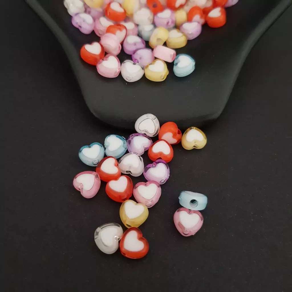 Miçanga Entremeio Coração Em Acrílico