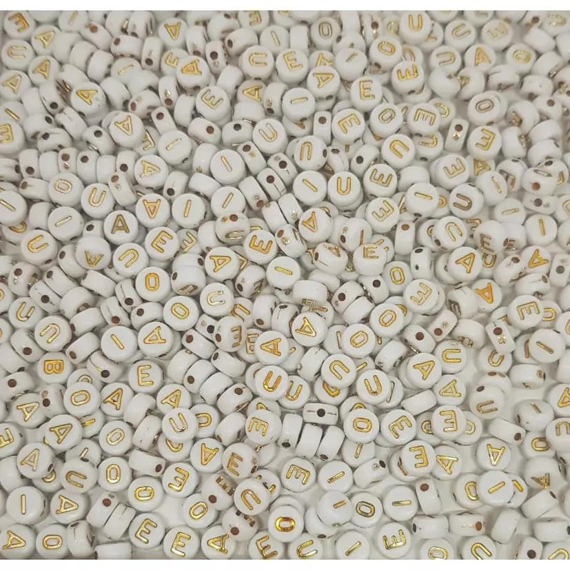 Miçanga Redonda Com Letras Douradas Vogais 7mm